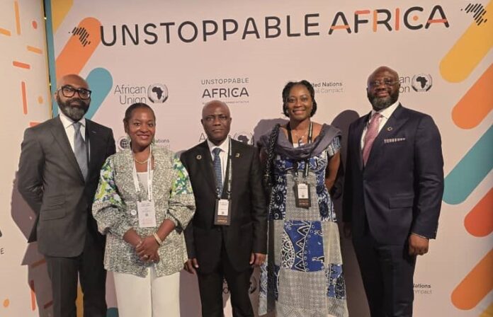 L-R: Ini Ebong, FirstBank; Tolulope Lewis Tamoka, Chief of Government Relations and Africa, United Nations Global Compact (UNGC); Olusegun Alebiosu, Managing Director/Chief Executive Officer, FirstBank Group; Folake Ani-Mumuney, Group Head Marketing and Corporate Communications, FirstBank, and Timi George, Managing Director/Chief Executive Officer FirstBank Pension Custodian during the Unstoppable Africa programme of the Global Africa Business Initiative ( GABI) a side event at United Nations General Assembly (UNGA) in New York, recently.